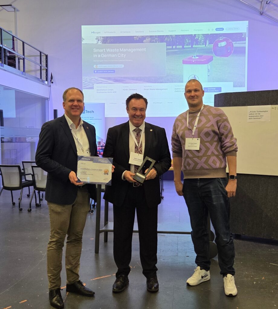 Ein besonderes Highlight folgte im Anschluss: Der Preis für das Projekt der sensorgesteuerten Mülleimerleerung „SmartWasteHürth“ wurde von Dr. Daniel Trauth (dataMatters GmbH) an den Bürgermeister der Stadt Hürth, Dirk Breuer, sowie an Stefan Welsch, Vorstand der Stadtwerke Hürth AÖR, überreicht. Wir gratulieren herzlich zu diesem gelungenen und praxisnahen Innovationsprojekt.